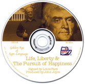 Life Liberty and the Pursuit of Happiness No signer in America could bring Thomas Jefferson to the screen the way Lou Fant does. This show captures Jefferson's brilliance. Lou visits Jefferson's home at Montecello, the University of Virginia which Jefferson founded, the Library of Congress where thousands of Jefferson's books were housed. Fant explains many of Jefferson's inventions and relates the writing of the Declaration of Independence in great detail. This true life adventure fascinates ages 12 thru adult. #2061 $49 |