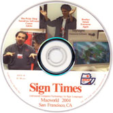 HIGH TECH COMPUTER SIGNS Macworld 2004 - San Francisco, CA Advanced Computer Technology in Sign Language Current products from THE PRINT SHOP, SASSAFRAS SOFTWARE, CANON, ADOBE, BROTHER, INTUIT, FREEVERSE, APPLE. Visit each booth just like you were there to discover all the new computers and programs that they run. #3000 $42. |