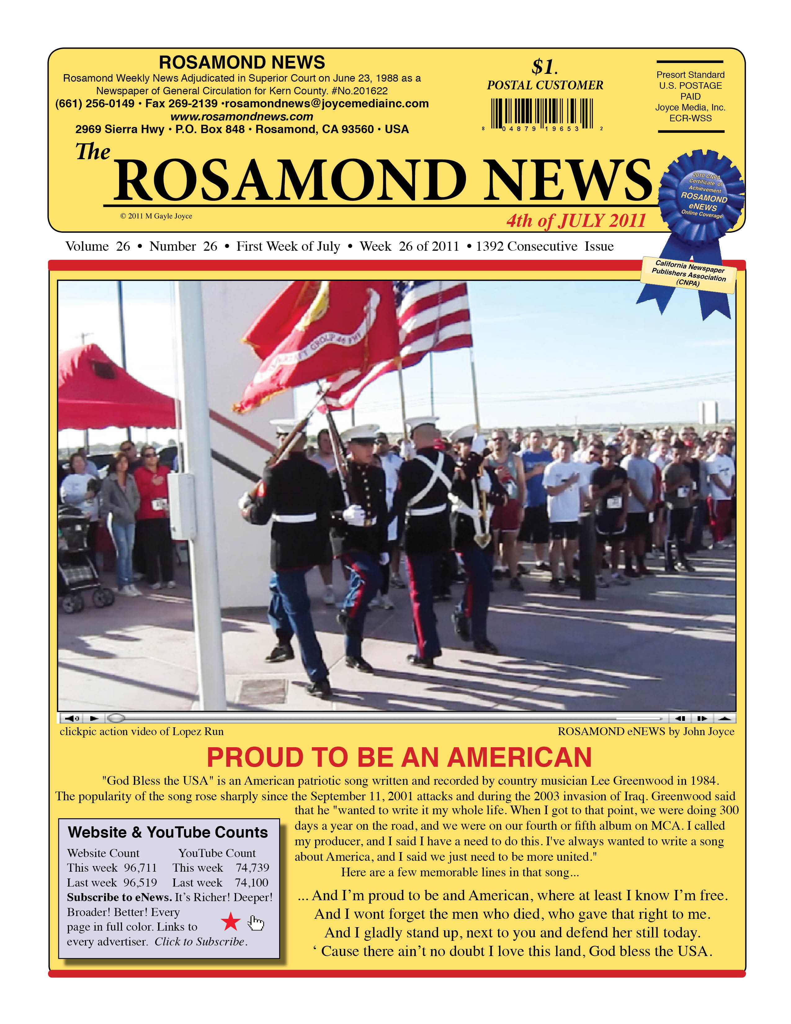 Adjudicated in Superior Court on June 23, 1988 as a Newspaper of General Circulation for Kern County. #No.201622